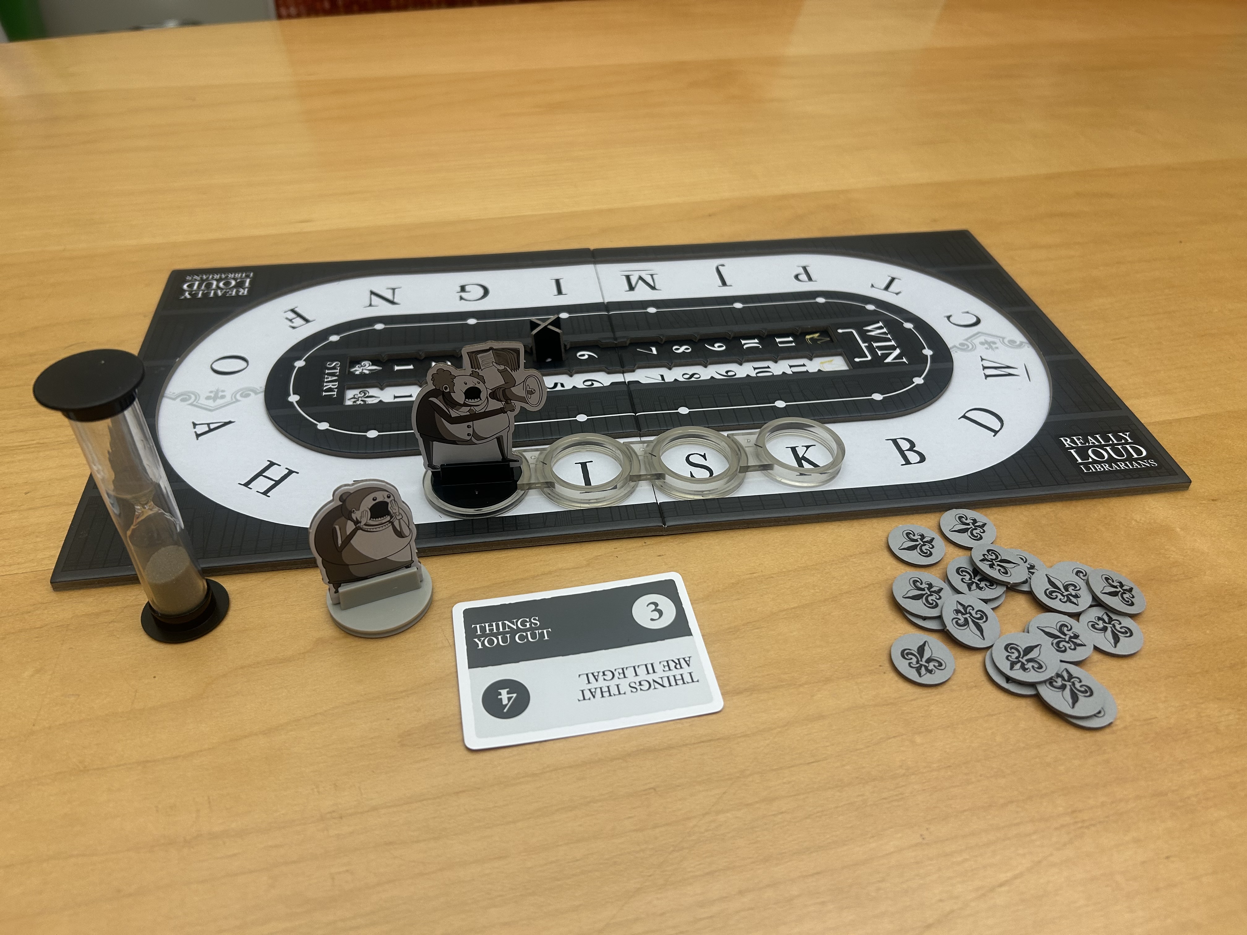 Our featured game for September 25th is Really Loud Librarians from the creators of Exploding Kittens. It is a party game for two or more players and is a “Merciless word-shouting game” in which players race to be crowned the loudest librarian. Players are split into two teams and compete in a race around a Word Track. The first team up flips over a sand timer then proceed to guess words related to the category cards that begin with the next three letters on the Word Track (For example, if the category card was “Ice Cream Flavors” and your next three letters were M, I, and G, you could guess Mint, Irish Cream, or Green Tea to move one, two, or three spaces around the track respectively). After both teams have a chance to shout out some words, the team that moves the furthest around the track wins a point. The first team to get 12 points wins the game. Really Loud Librarians is a fun little head-to-head word smith game perfect for anyone who spends their days reading. Be sure to come to our feature board game night on September 25th to find out what it's all about!