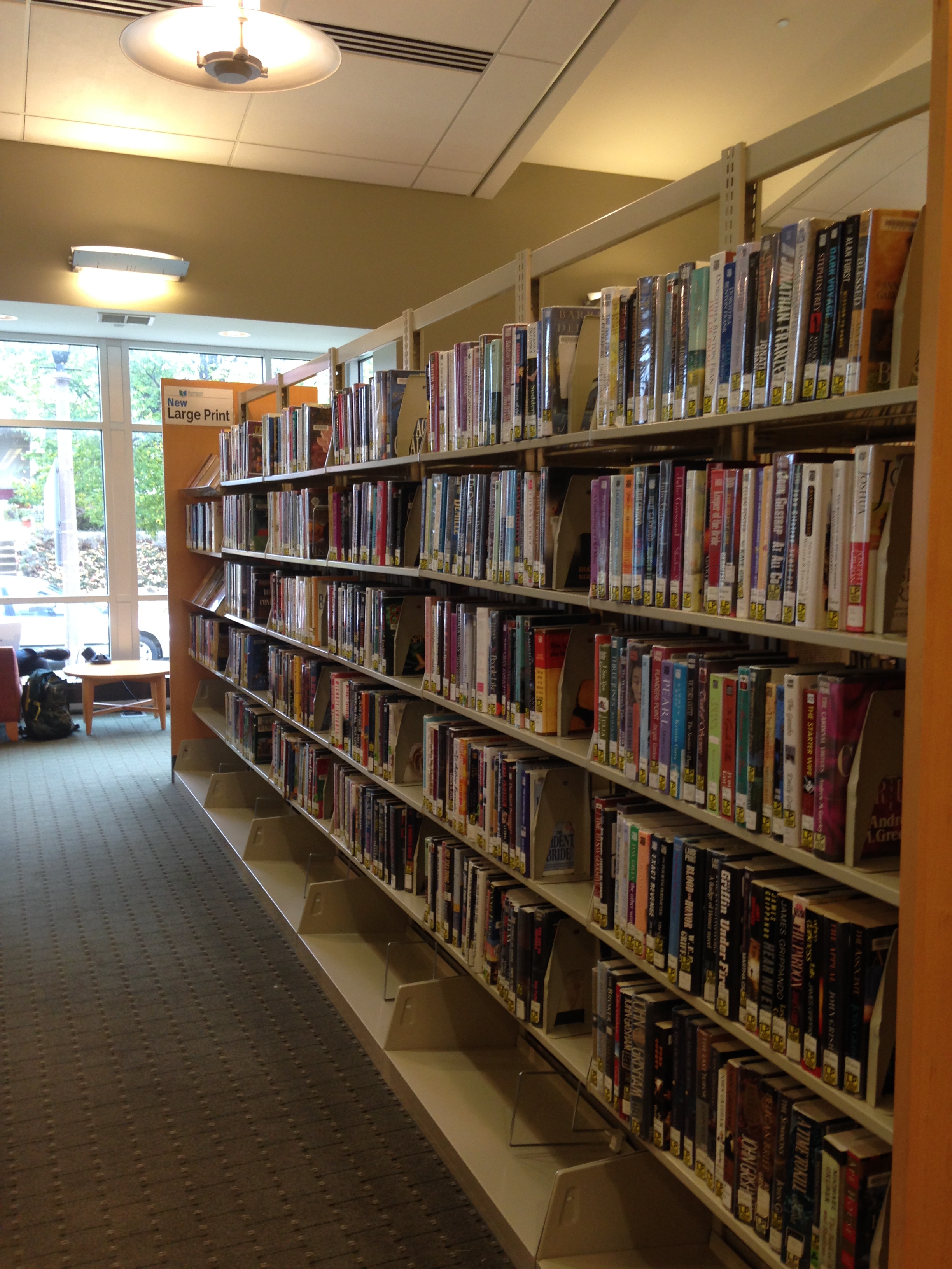 Recently we've begun to move their location so they're even more accessible. Now, the Large Print section begins across from the fiction, directly next to the adult computer lab. Not only are the books more findable in their new home, but they are easier to browse through because the shelves are now less crowded.