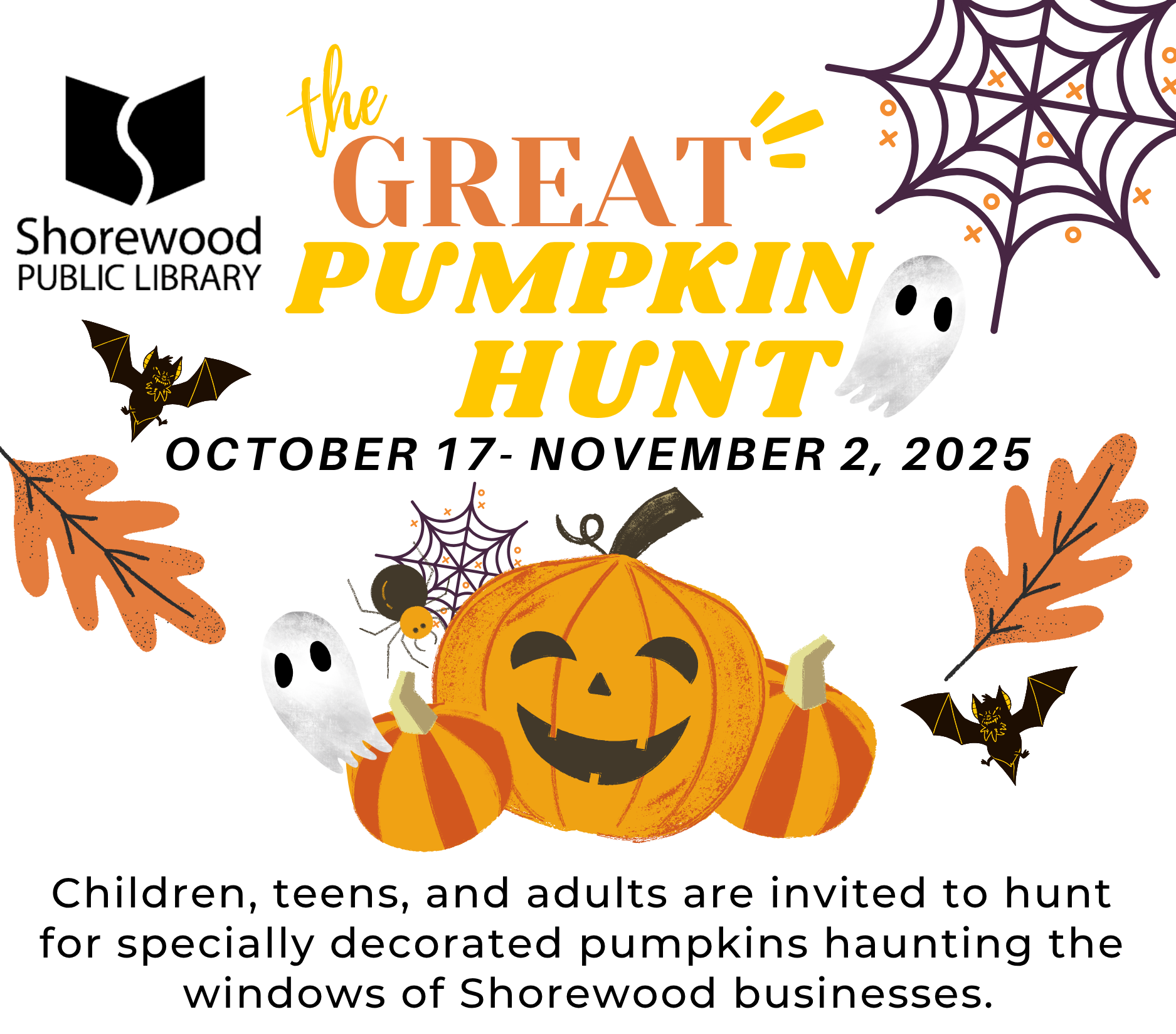 Children, teens, and adults of all ages are invited to join the hunt for specially decorated pumpkins haunting the windows of Shorewood businesses! The hunt begins on Friday, October 17th and runs through Sunday, November 2nd at Trick-or-treat bags await all children who complete the hunt and can be picked up at the library, while teens and adults who complete the hunt will be entered into a drawing for gift cards to Shorewood businesses!