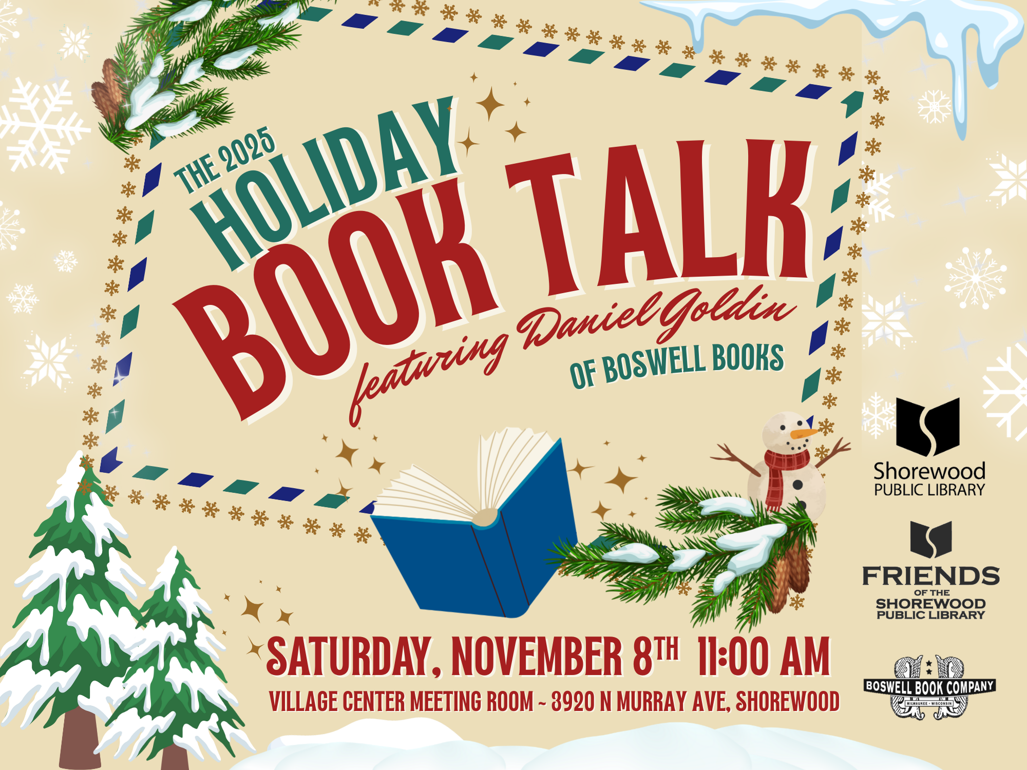 Join the Friends of Shorewood Public Library and Boswell Book Company's proprietor Daniel Goldin for a presentation on the best books to look out for during this holiday season!