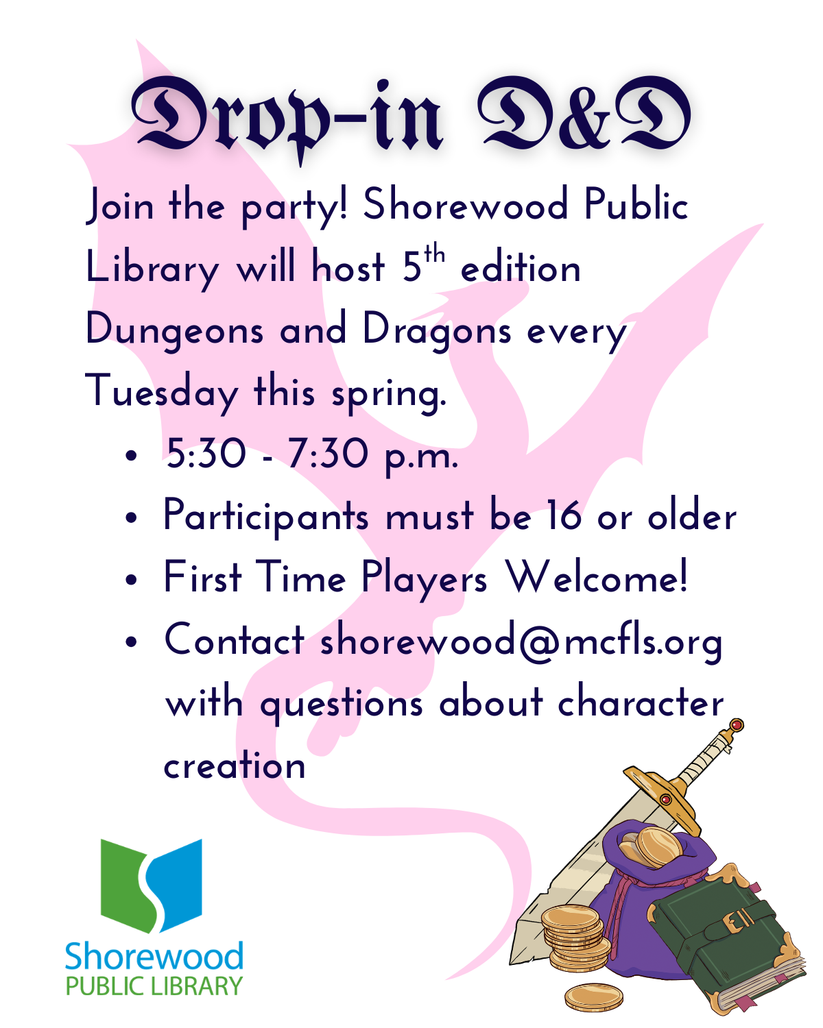 Curious about Dungeons and Dragons? Looking for a friendly local campaign? Drop in to the Shorewood Public Library!